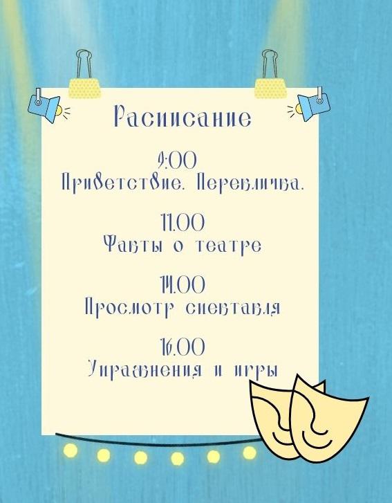 На смене вы узнаете много интересного про театр, сможете посмотреть классические спектакли и поупражняться в актерском мастерстве!